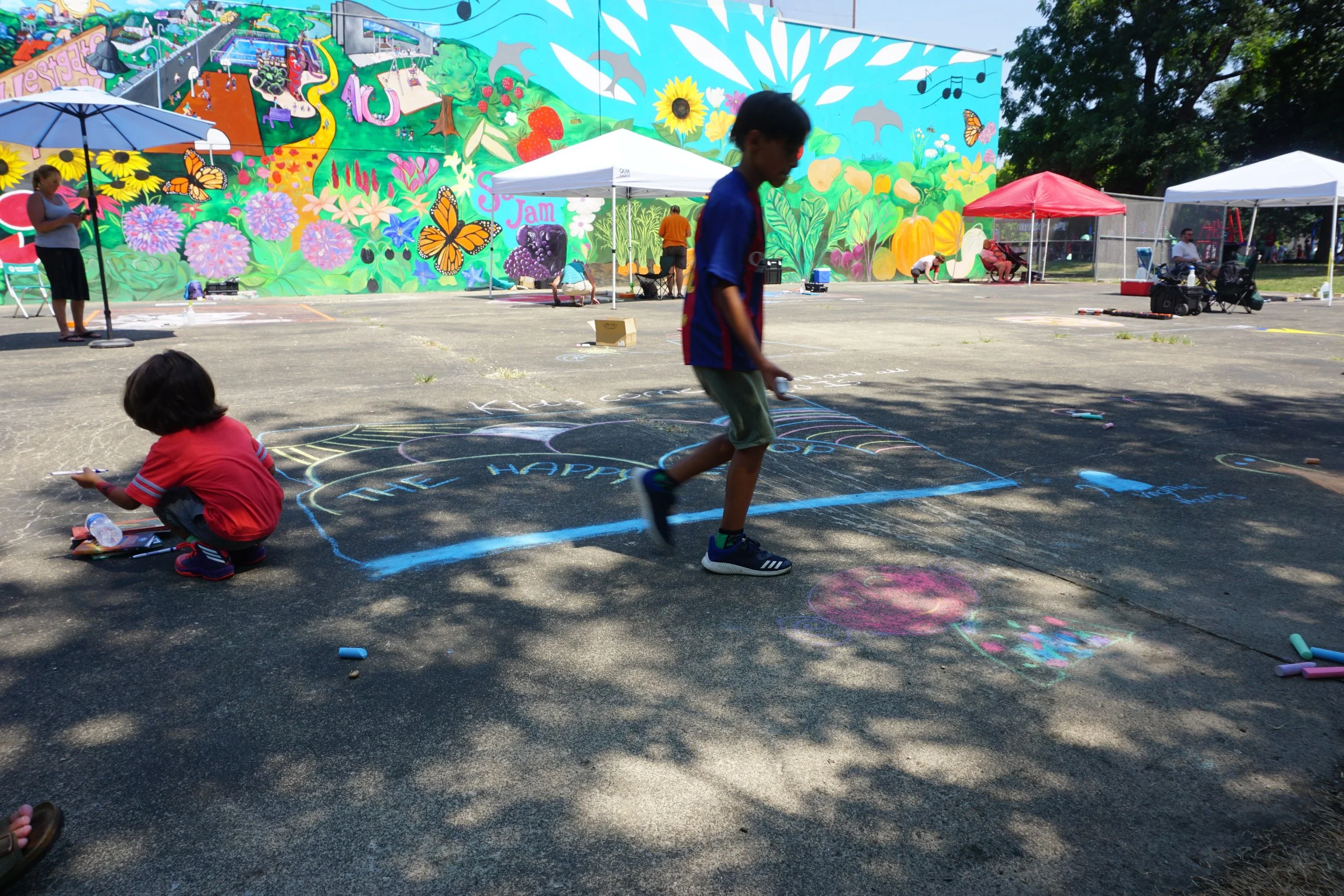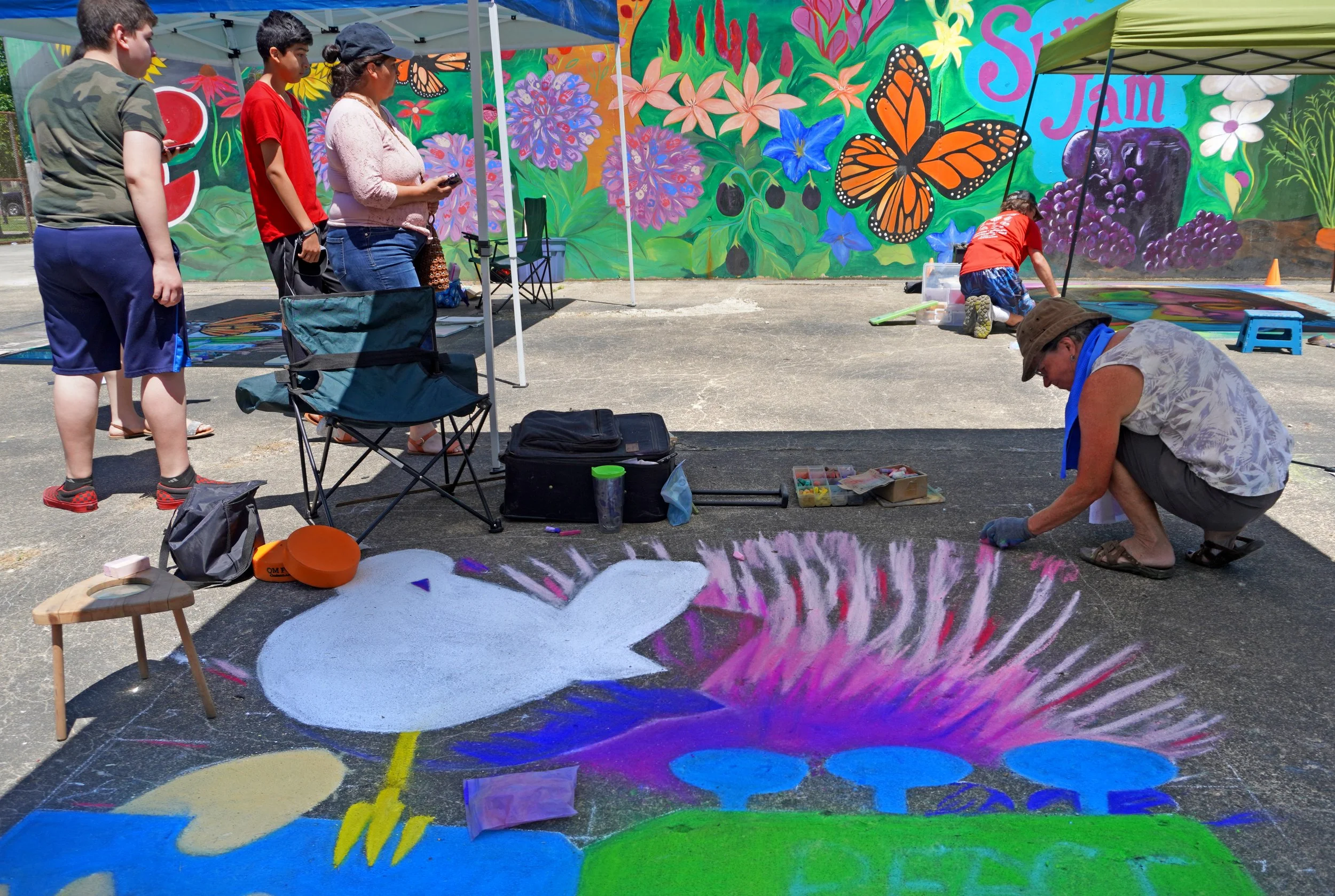 Our festival features professional chalk artists who create amazing temporary works of art. Be sure to stop by, say hi, and see their progress throughout the day! They’ll be working their magic in front of the Fantastic Food Garden mural.