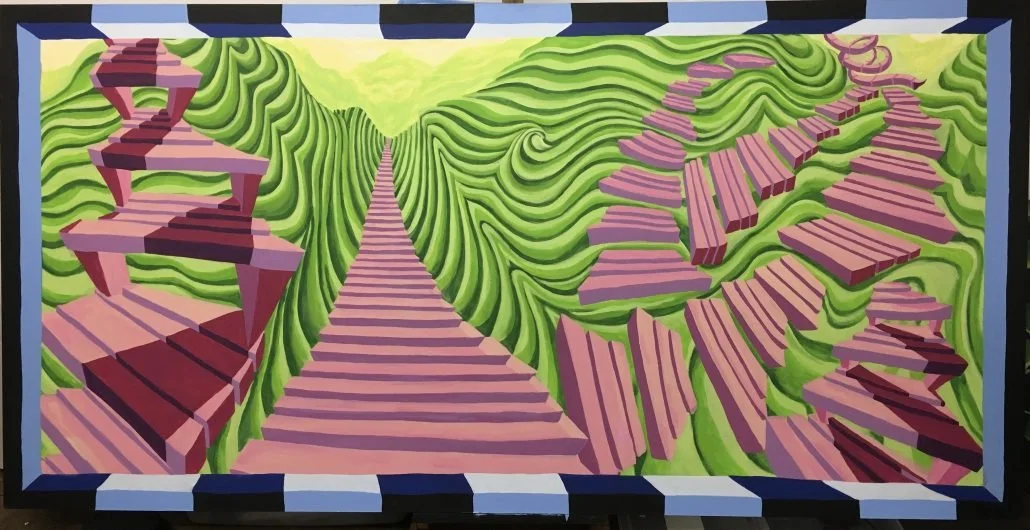 Step By Step Up Starez by Hilltop artist Brian Marcus has the honor of being our first 8′ X 4′ art panel! Brian is an abstract organic expressionist with studio space at Chromedge Studios.